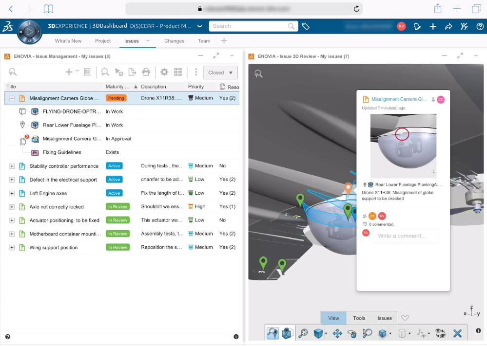Một trong những thách thức lớn của các dự án thiết kế công nghiệp là làm việc nhóm hiệu quả, đặc biệt khi các thành viên không ở cùng một địa điểm. 3DEXPERIENCE CATIA giải quyết vấn đề này thông qua: