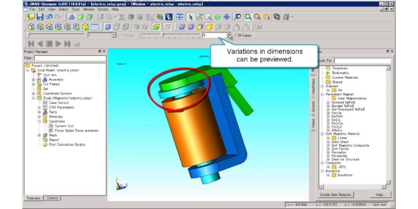 - JMAG có thể tối ưu hóa thiết kế của một điện từ để tối đa hóa lực trong khi giảm thiểu âm lượng.