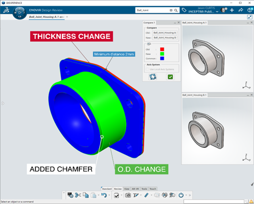 Với những thay đổi về kỹ thuật, các nhà cung cấp đã học được cách mong đợi những điều không mong muốn, vì vậy có thể tốn thời gian để xác minh mức độ thay đổi mô hình. Với 3DEXPERIENCE ENOVIA, bạn có thể nhanh chóng xác thực sự khác biệt giữa mô hình cũ và mô hình mới, dù là 3D hay 2D, để đẩy nhanh các quyết định và lập kế hoạch chính xác cho các tác động của tất cả các sửa đổi kỹ thuật.
