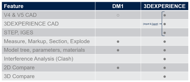 ENOVIA DM1 được phát triển chỉ để xem dữ liệu CATIA V5 và các tệp mô hình của version CATIA V4. Vì vậy các định dạng mô hình dữ liệu mà bạn nhận được như STEP hoặc IGES thì sao? Hoặc Nếu bạn cần tạo ra dữ liệu mô hình file step hoặc IGES từ dữ liệu CATIA V5 thì thế nào? Bạn có thể làm được điều này với 3DEXPERINCE ENOVIA, Đây là điểm mà DM1 không đạt được và đó là lý do tại sao đã đến lúc bạn cần cân nhắc nâng cấp. Tại NSV sẽ hỗ trợ nâng cấp lên 3DEXPERIENCE và sẽ cung cấp cho bạn khả năng mở V4, V5, STEP, IGES và cả dữ liệu 3DEXPERIENCE CATIA. Hơn thế nữa, bạn cũng có thể xuất các định dạng này một cách dễ dàng.