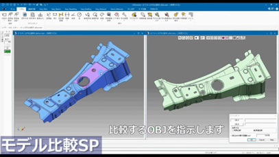 - Chức năng này so sánh mô hình 3D sản phẩm chi tiết trước và sau khi thay đổi thiết kế, đồng thời hiển thị những vị trí thay đổi trong bảng danh sách và trên giao diện phần mềm. Cụ thể Model comparison SP dùng để so sánh hai dữ liệu CAD cạnh nhau trên màn hình, và Extract shape difference SP dùng để so sánh hai dữ liệu CAD bằng cách xếp chồng chúng lên nhau và hiện thị vị trí khác biệt.